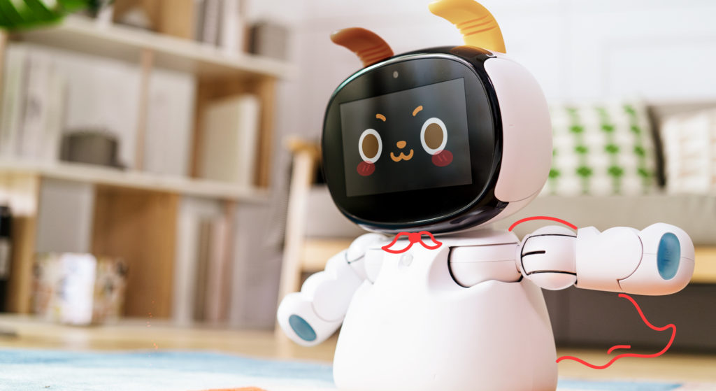 Kebbi Air is an interactive social robot developed by NUWA Robotics. It is designed for natural communication with users through a combination of expressive “facial” animations on its display, body movements and gestures, and AI-driven interaction.